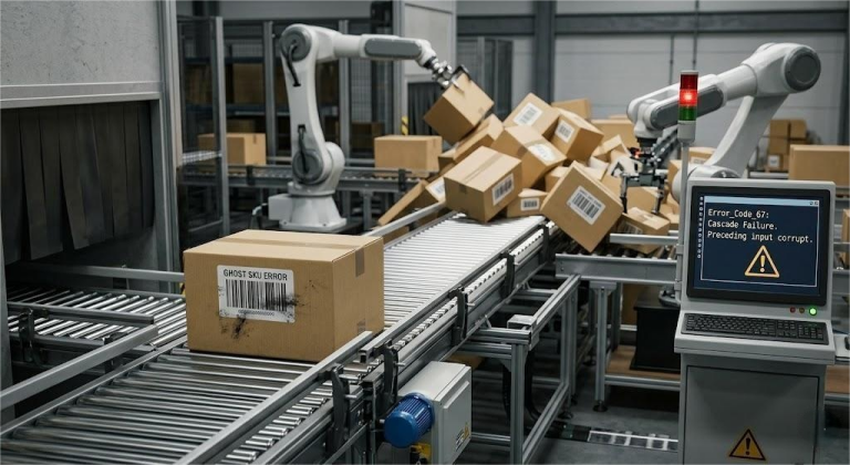 看看在供应链领域这是怎么发生的。一个单独的“幽灵 SKU”造成的绝不仅仅是一条错误的数据库记录。它会在第 6 步破坏定价逻辑,在第 9 步引发虚假的库存检查,在第 12 步生成错误的运输标签,最后在第 15 步给客户发去错误的确认信息。因为每一个下游系统都依赖上游系统生成的信息,这就产生了一位从业者所说的“错误级联(error laundering)”——糟糕的数据经过处理后,反而披上了合法的外衣。